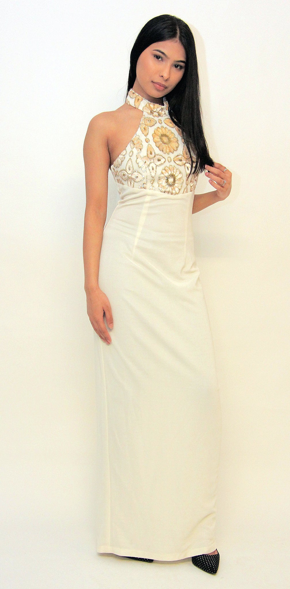 Farida Cream Dress Gold Detailing Floor Length